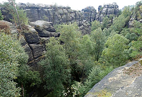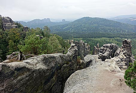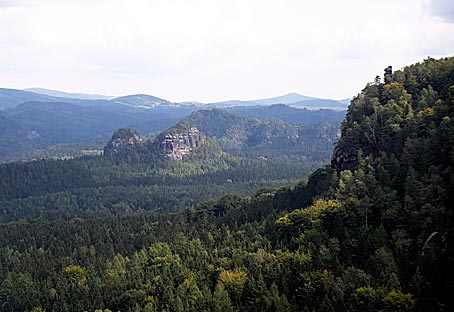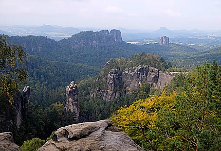 hinüber bis zu den Nordwänden der Schrammsteine bis hin zum Hohen Torstein und zum Falkenstein.