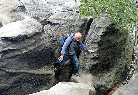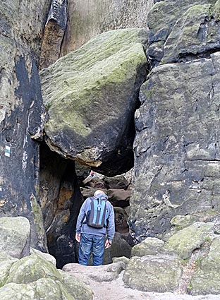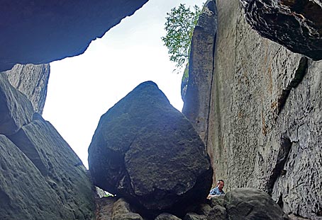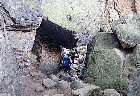 Wieder einmal ging es unter einem Klemmstein hindurch. |