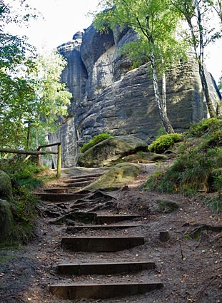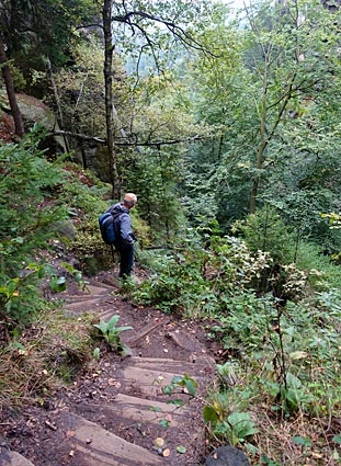 Auf langen Stufenreihen ging es auf der Friensteinstiege hinunter ins Tal. Über Königsweg, Heideweg und Dietrichsgrund sind wir dann |