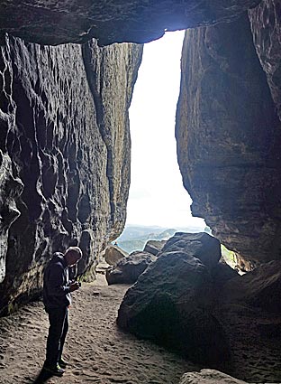 Das Plateau vor der Idagrotte bietet atemberaubende Fern- und Tiefblicke. Im Volksmund wird der Frienstein auch als "Vorderes Raubschloss" bezeichnet. |