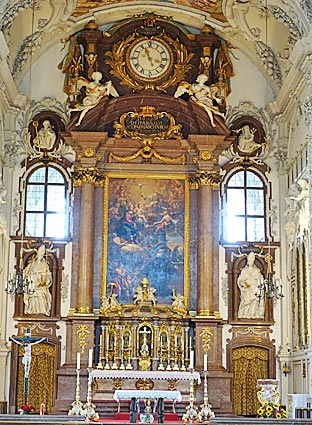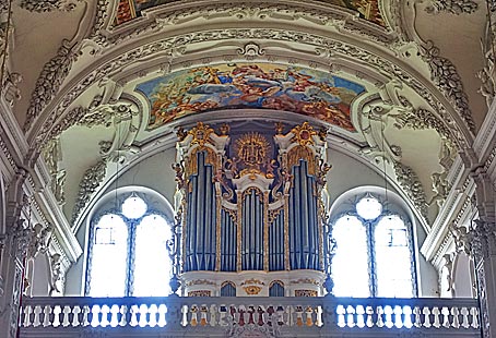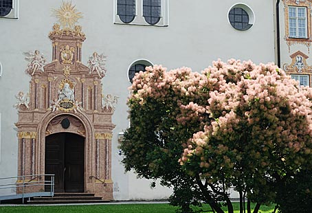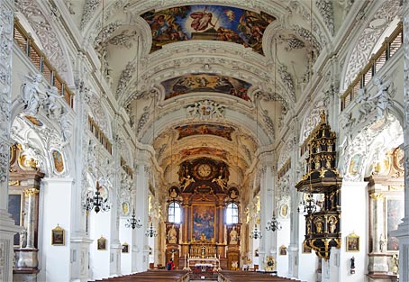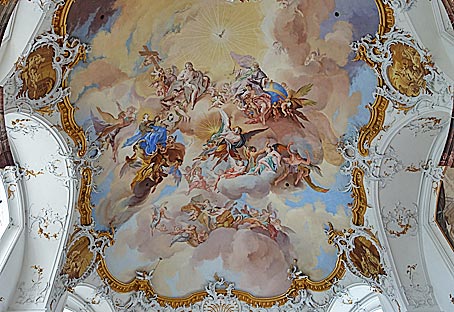 Die Gewölbebilder in der Klosterkirche stammen von Hans Georg Asam und gelten als die frühesten Fresken der altbayerischen Barockkunst.