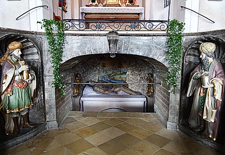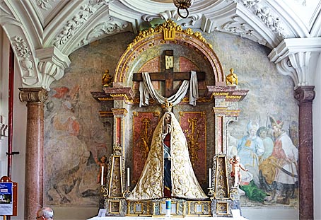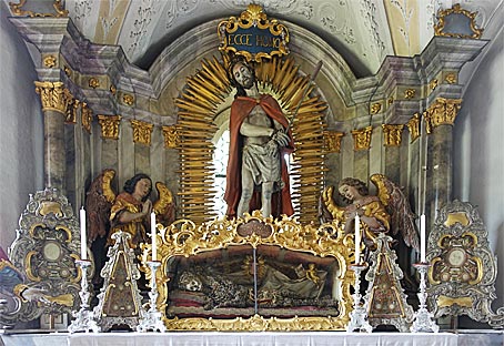 Der Hochaltar in der Heiliggrabkapelle stammt von 1880. Unter dem erhöhten Hochaltar liegt das Heilige Grab, darunter befindet sich die Eremitengruft. |