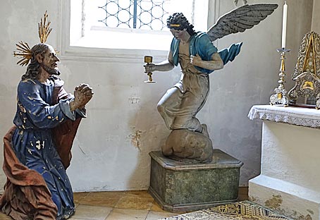 < Der Altar stellt den Abschied Jesu von seiner Mutter dar. |