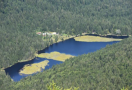 Auf dem rechten Bild kann man die 3 schwimmenden Inseln des Kleinen Arbersees gut erkennen.