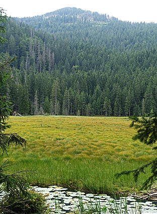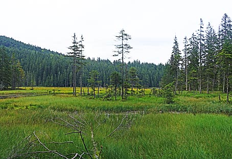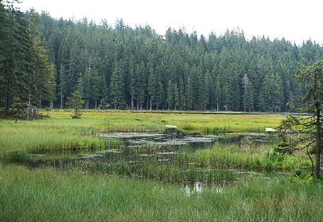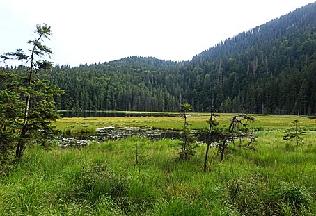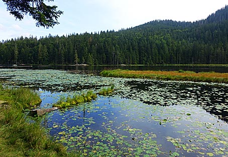 Die Schwingrasen im Großen Arbersee schieben sich am Westrand des Sees auf ca. 2 ha vom Ufer aus über die Wasserfläche