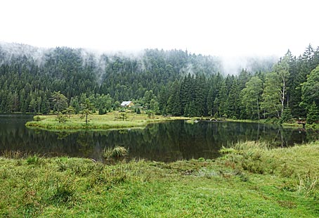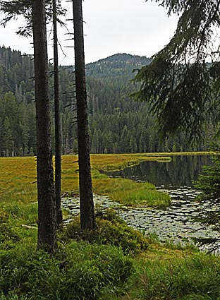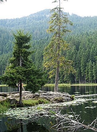 rechts: der Große Arbersee mit seiner schwimmenden Insel