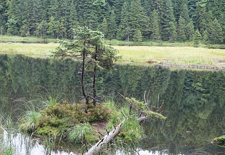 Auch der Große Arbersee ist ein Eiszeitsee mit einem als "schwimmende Insel" bezeichneten Schwingrasen.