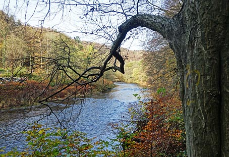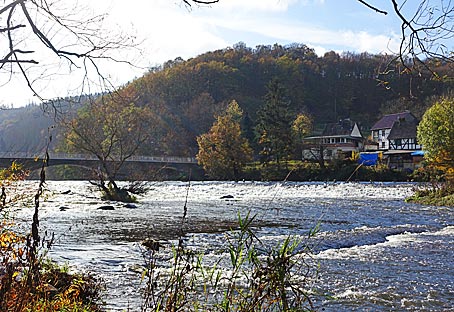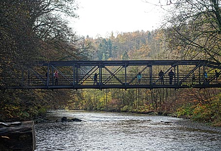 Am ehemaligen Ausflugslokal "Wiesenkotten" kann man auf einer Wanderbrücke "über die Wupper gehen" ;-)