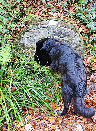 < gemauerte Quelle am Wegesrand |