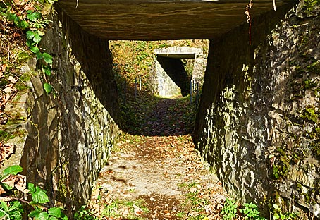 Die Tunnel gehören zur Strecke der ehemaligen Werkspferdebahn. Die Pulvermühle war bis 1918 in Betrieb.