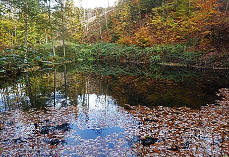 Bach entlang hinunter zum Hexenweiher.