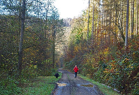 Der Weg führt durch einen schönen Wald, aber Wild haben wir nicht gesehen.