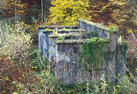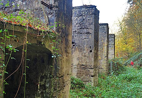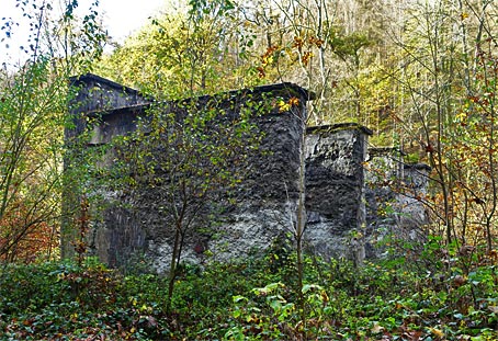 Relikte des Produktionsgeländes der ehemaligen Pulvermühle.