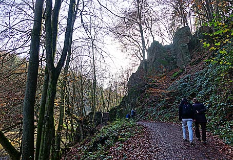 alten, artenreichen Laubwald an den Dicken Steinen vorbei.