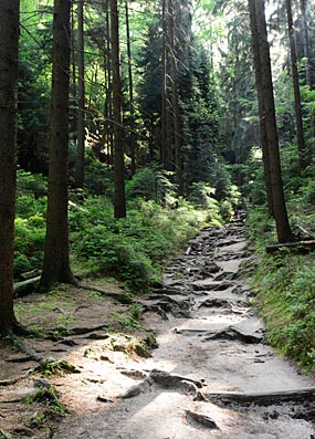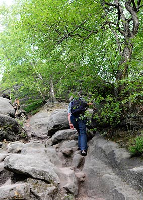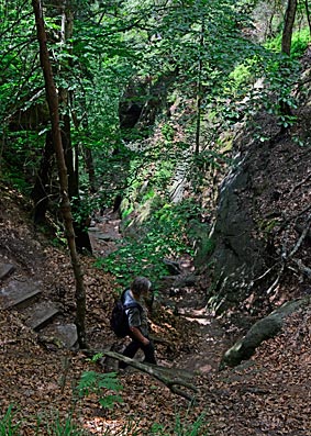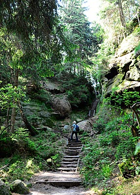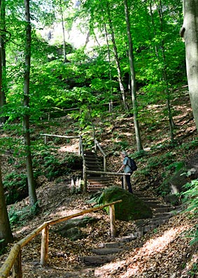 Schon der Anmarsch durch den Schießgrund vorbei am Falkenstein war ein Genuss. Dann ging es über gut ausgebaute Treppen nach oben.