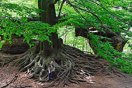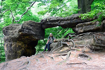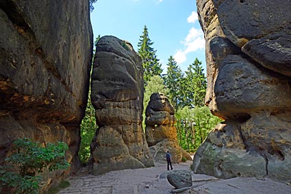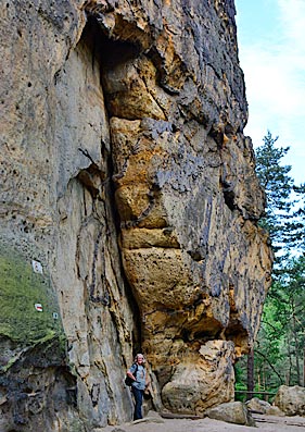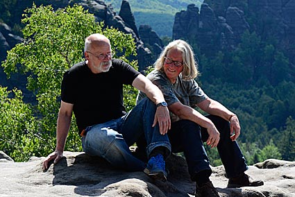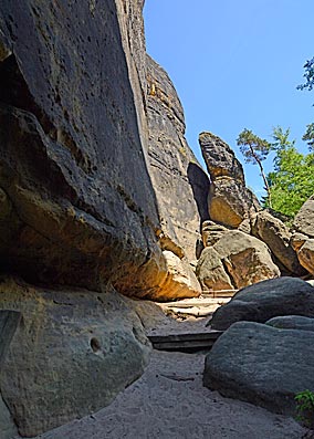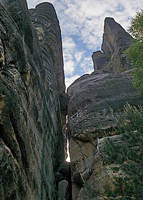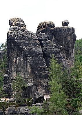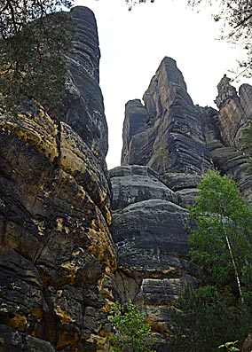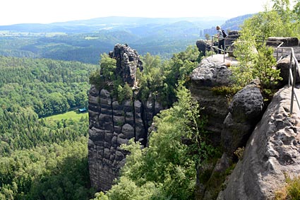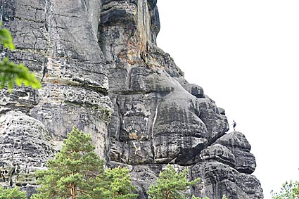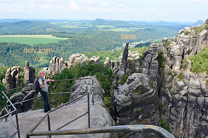 links: Im Hintergrund sieht man wieder die beiden schräg gegeneinander gestellten Zschirnsteine.