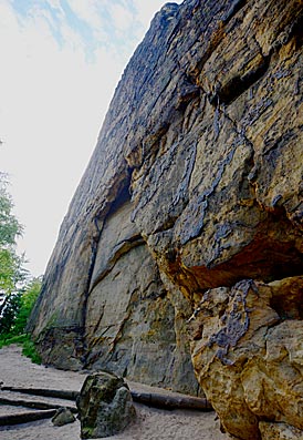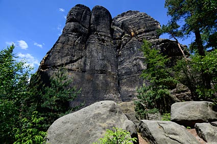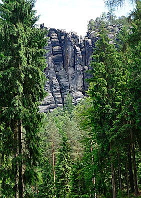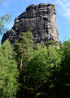 Seine markanten Felswände sind mit ca. 90 Meter die gewaltigsten Felstürme der Sächsischen Schweiz.