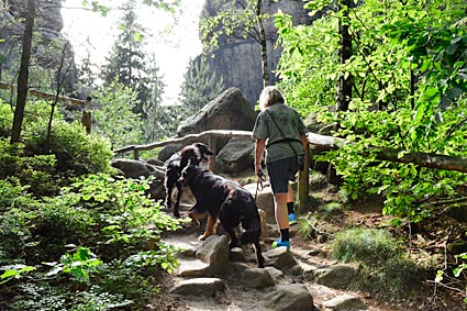 Der Auf-/Abstieg durch die Breite Kluft ist für Hunde kein Problem. |