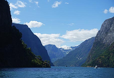 und der Næroyfjord ist mit 17 km sein kleinster Seitenarm und schmalster Fjord der Welt.