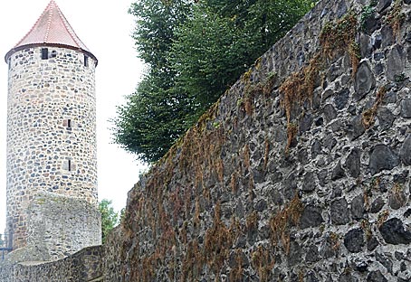 Die alte Stadtmauer mit dem "Grauen Turm" aus dem 12.-14. Jhdt. — Hochzeitshaus
