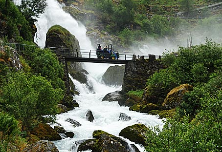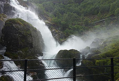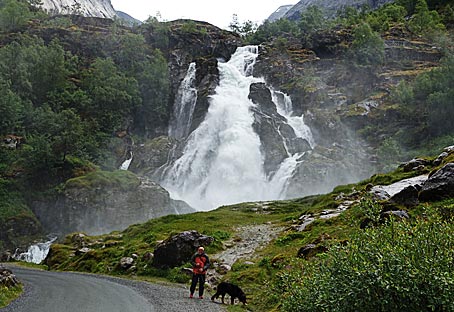 Der Wasserfall Kleivafossen zählt zu den beliebtesten Fotomotiven Norwegens. Ohne "Sprühregen-Dusche" kam man nicht vorbei.