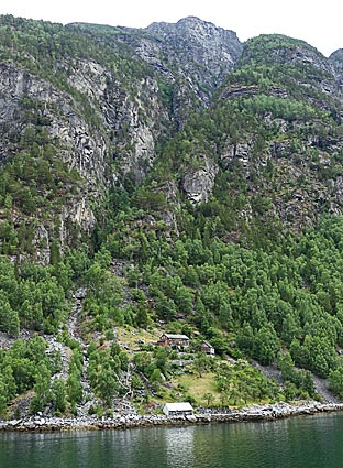 Blick von der Fähre zu unserem Stellplatz Bringefossen / Gomdalsfossen > |