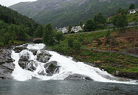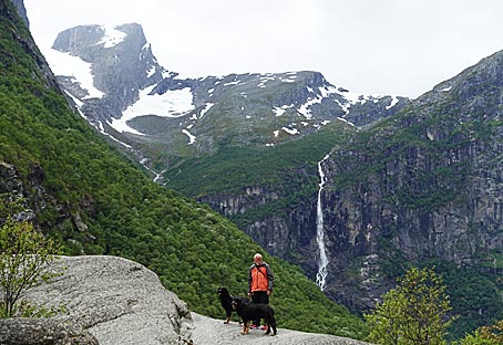 Der Wasserfall am gegenüberliegenden Ufer wird "Freier" (norw. Friaren) genannt. > |