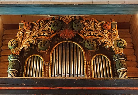 Die Orgel stammt aus dem Jahr 1907 Am Küsterstuhl sieht man Reste von alten Schnitzereien,