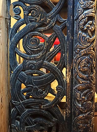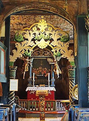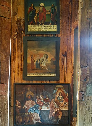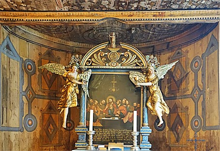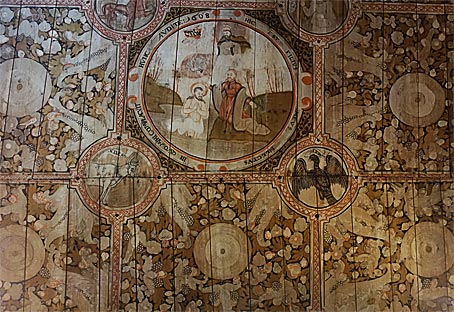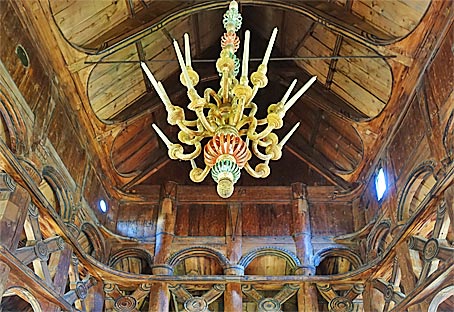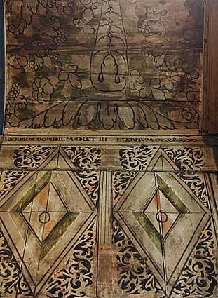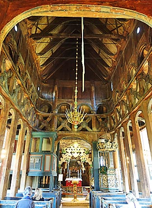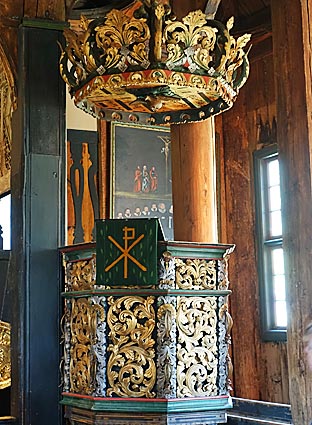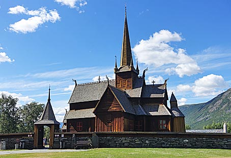 Die Stabkirche von Lom wurde 1158 im Basilikastil errichtet. Die Gemälde in der Lomer Kirche sind in der ersten Hälfte des 18. Jhdt. entstanden. |