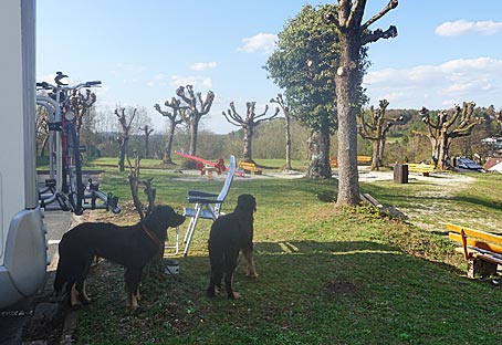 Übernachtet haben wir auf dem Stellplatz von Gößweinstein — reich geschmückter Osterbrunnen neben der Wallfahrtskirche