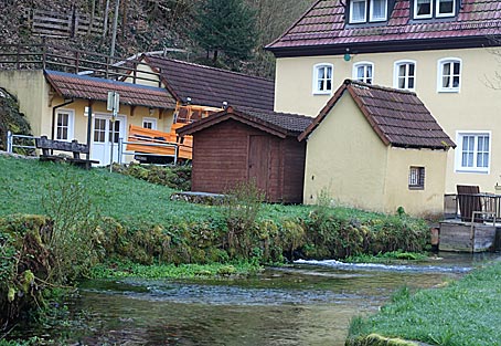 ^ Die Sturzquellen an der Stempfermühle sind mit einer Schüttung von