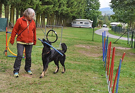 Nachmittags mussten die Hunde beschäftigt werden und wir haben den kleinen Agilityparcour des Campingplatzes ausprobiert.
