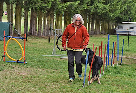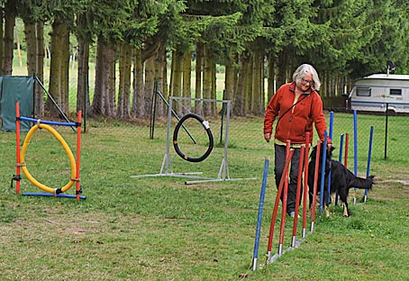 Während ich mit Chili über den Parcour lief, schaute Carla hinter dem Zaun vom benachbarten Übungsplatz aus zu.