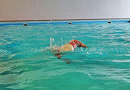 Vormittags sind wir erst mal im schönen Hallenbad des Campingparks schwimmen gegangen ...