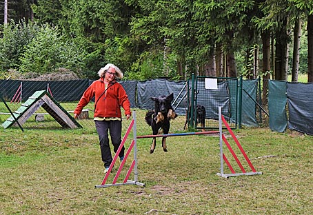 Wegen ihres operierten rechten Vorderlaufs habe ich Carla aber nur über die ganz niedrige Stange hüpfen lassen.