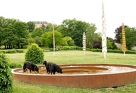 ... und im Fasanengarten mit seinen modernen, überdimensionalen Fasanenfedern aus Stahl