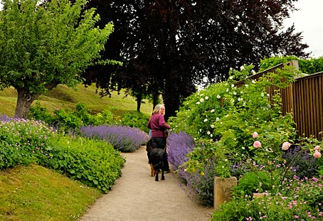 rechts: Blütenpracht im Berggarten jenseits der mittelalterlichen Stadtmauer