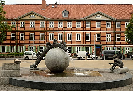 Der Brunnen auf dem Nikolaiplatz soll die Vergangenheit, die Gegenwart und die Zukunft symbolisieren