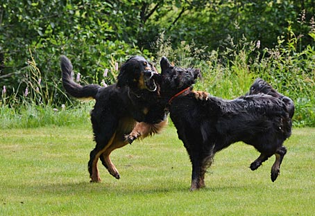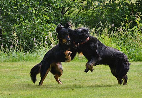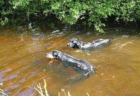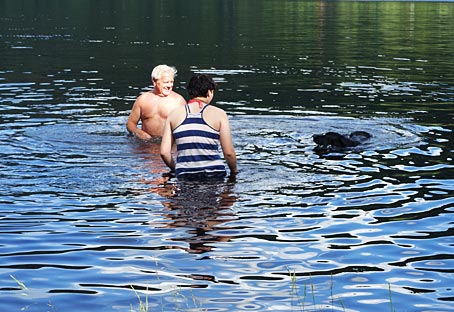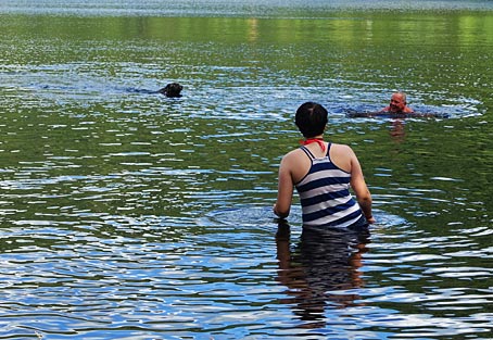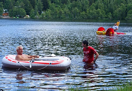 Unsere Nachbarn hatten kein Problem mit Hunden und so fand Chili neue Freunde, die sie ausdauernd schwimmend umkreiste.