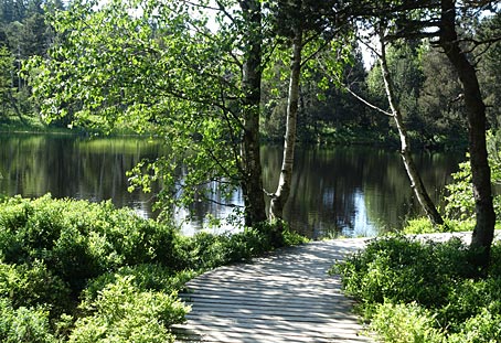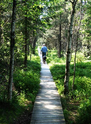 Neben dem Steg wachsen große Bestände der Preiselbeere (Vaccinium vitis-idaea) |