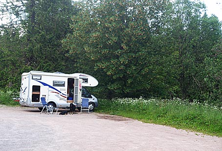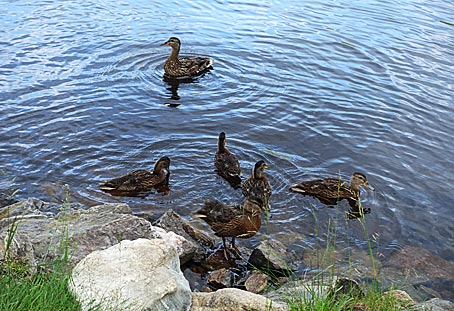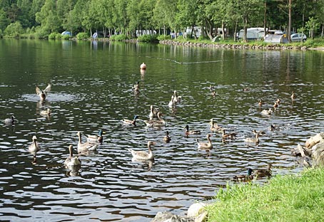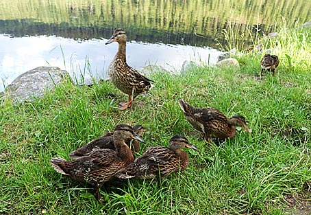 Auf dem Stellplatz kam eine Entenmama mit ihrem Nachwuchs zu Besuch und suchte nach Resten von unserem Frühstück.