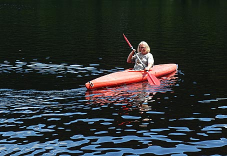 Ich bin noch nie mit einem Kajak gefahren und habe die Gelegenheit genutzt, auf dem Campingplatz ein Kajak auszuleihen.