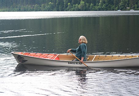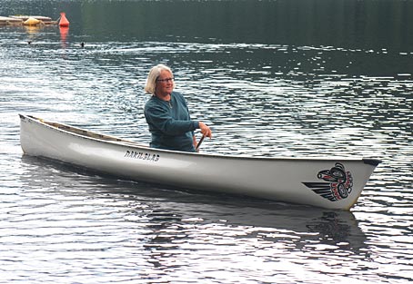 Dieses wunderschöne Kanu unserer Camping-Nachbarn hatte es mir angetan. Sie haben es mir geliehen und ich durfte es mal ausprobieren.
