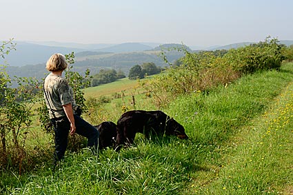 Vor Horbach kamen wir sogar an einem Feld mit Gewürzfenchel und Johanniskraut vorbei. Unterhalb des Weges stand eine kleine Mutterkuhherde |
