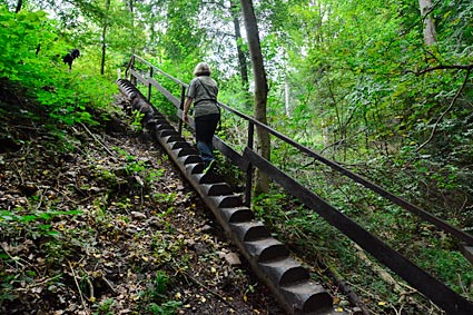 vorbei an der Felsenkirche geht über 216 Treppenstufen. Auch der weitere Weg verläuft entweder steil bergab oder steil bergauf. Anstengend...