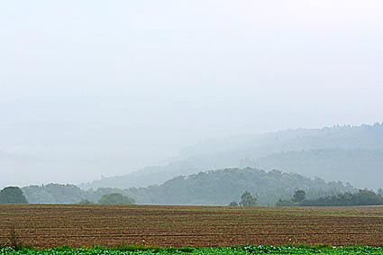 eine traumhafte Aussicht über die Höhen des Hunsrücks. Leider war es während unseres Aufenthalts dort etwas diesig.