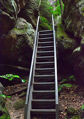 Wegen der Enge ist die Himmelsleiter durch die Ritterschlucht eine Einbahnstraße, auf der kein Gegenverkehr möglich ist.