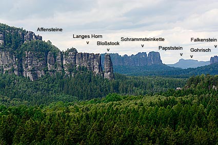 Im Hintergrund sieht man die langen Bärenfangwände des Kleinen Zschand > Das sächsische "Monument Valley" |
