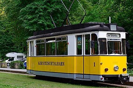Die Kirnitzschtalbahn wurde 1898 eröffnet und ist mit 8 km Streckenlänge die kleinste Straßenbahnlinie Deutschlands.