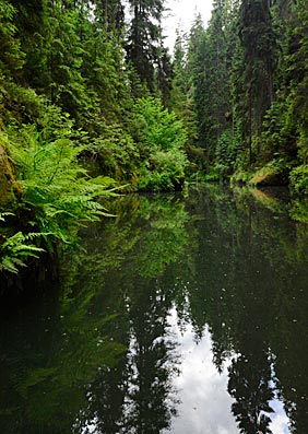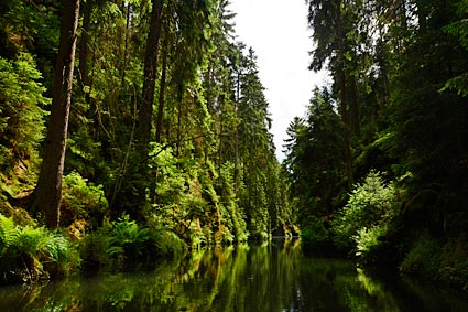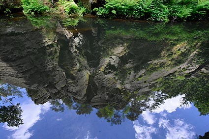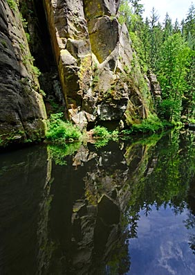 Durch das ruhige Wasser hat diese Schlucht eine ganz besondere Atmosphäre Kein Windhauch kräuselt das Wasser und stört die Spiegelung. |